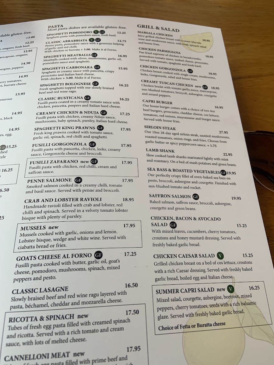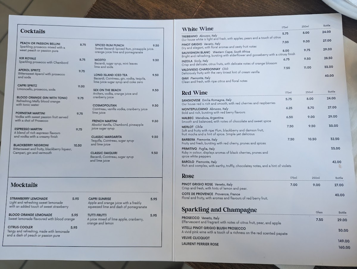 Bella Capri also offers an Italian wine list that complements the menu well, with staff happy to recommend pairings. Pricing is fair for the quality, with mains ranging between £14 and £22, and pastas averaging around £13.